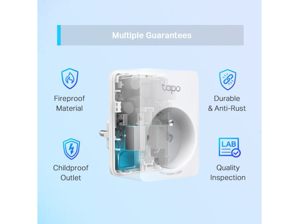 Tapo P110 je zkonstruován tak, aby byl malý a nechal sousední zásuvky otevřené, takže je vhodný pro každodenní použití.